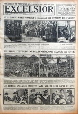 ASSASSINAT DU PRESIDENT DE LA REPUBLIQUE PORTUGAISE - LE PRESIDENT WILSON CONTINUE A RECUEILLIR LES OVATIONS DES PARISIENS - UN PREMIER CONTINGENT DE FORCES AMERICAINES REGAGNE SES FOYERS - LES FEMMES ANGLAISES EXERCENT AVEC ARDEUR LEUR DROIT DE VOTE