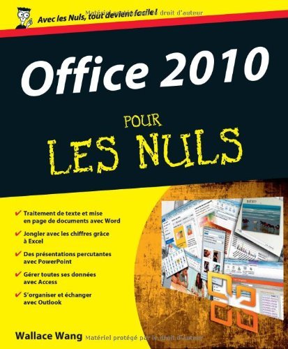 Avec Office 2010 pour les Nuls, à vous les rapports sous Word, les tableaux sous Excel, les diapositives PowerPoint, la gestion des données avec Access, la création de pages Web avec FrontPage, la messagerie et la gestion de rendez-vous avec Outlook. Vous pourrez même publier sur Internet, tout cela dans la joie et la bonne humeur.
